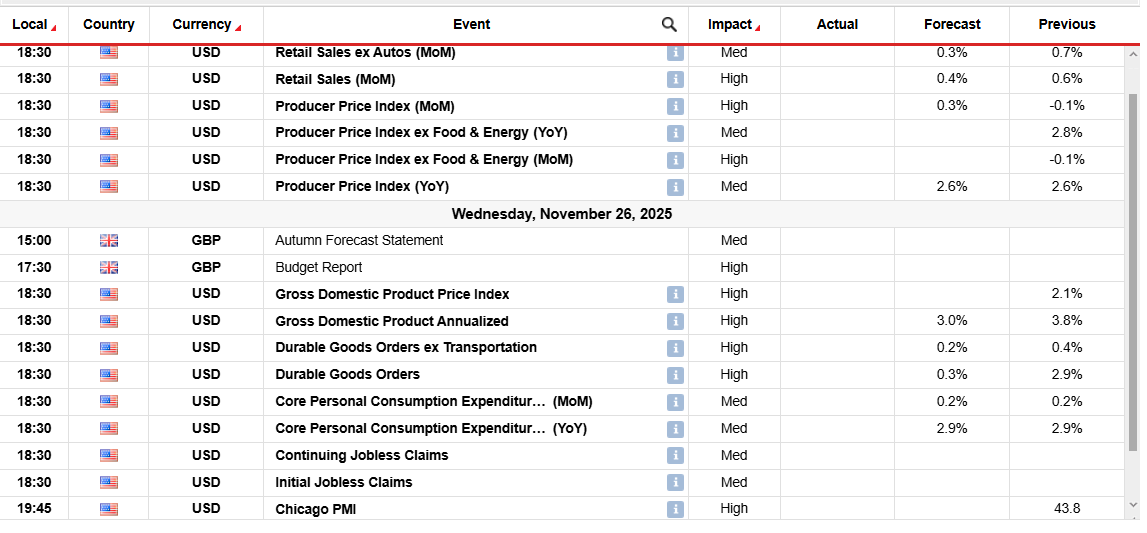 - All eyes on the UK Autumn budget and US inflation data that could shape the market expectations.