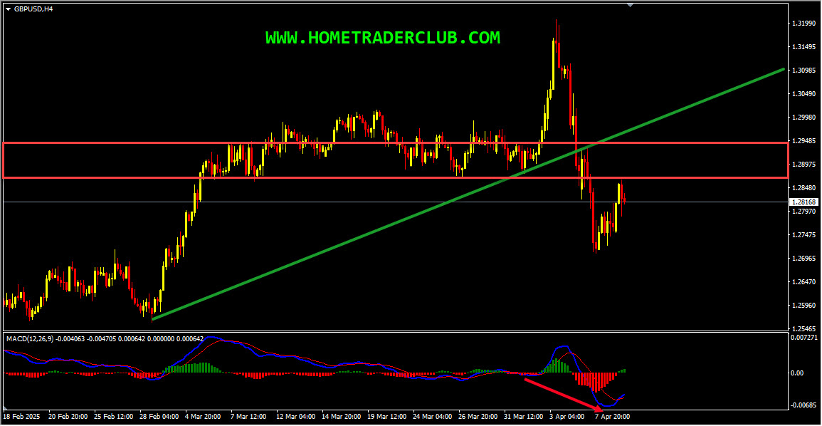 GBPUSD H4(4 Hours) Chart Analysis – Support Breakout, Most Recent Uptrend Line Breakout, Lower Lows