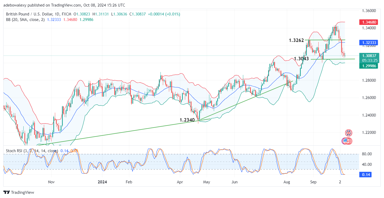 Meanwhile, the Stochastic RSI lines can be seen delivering a crossover in the oversold region. Technically, this aligns with the notion that prices may continue downward. Therefore, traders should brace for potential impacts at the 1.3043 and possibly the 1.3000 price marks.