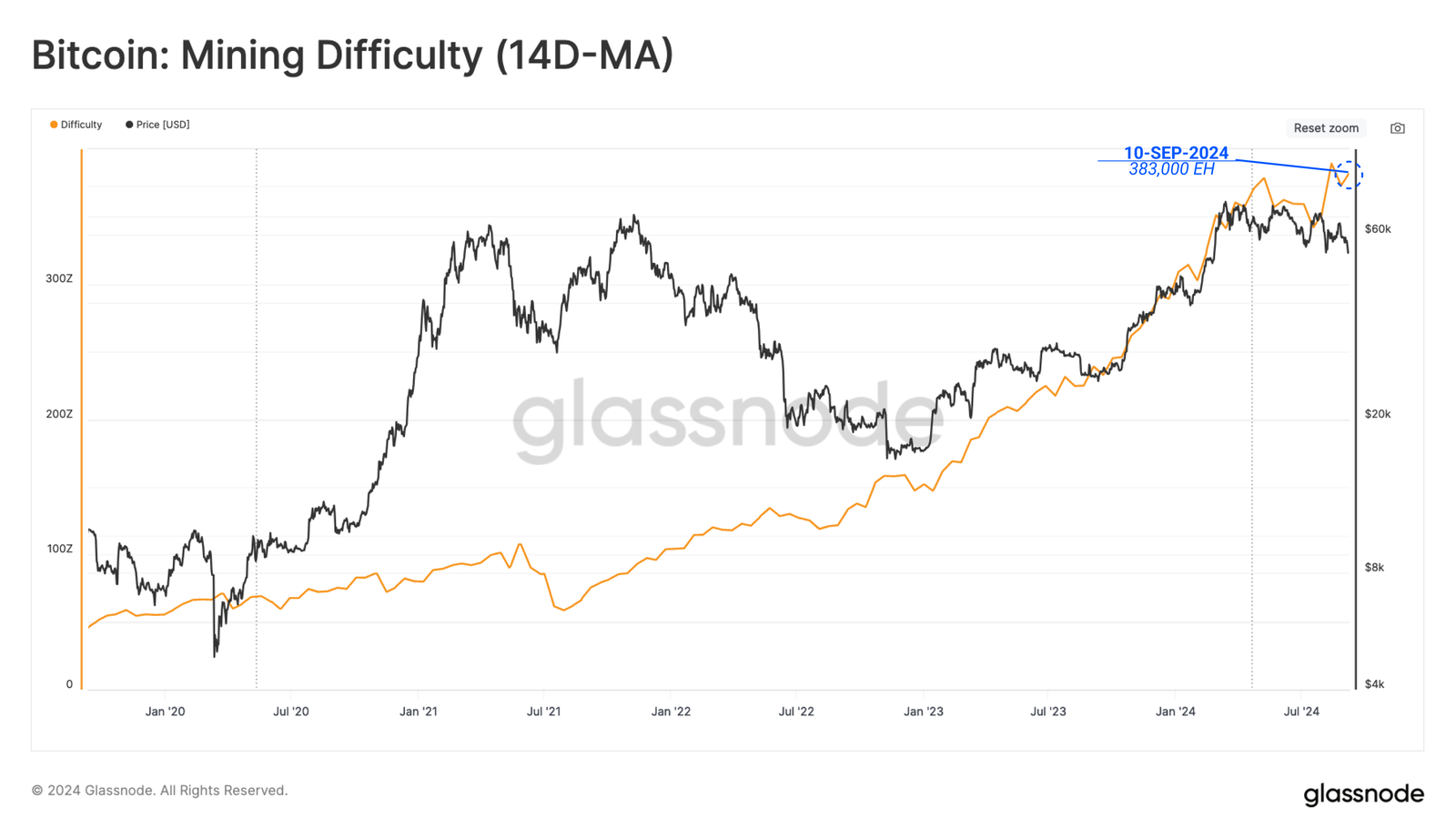 The uptick in hash rate and difficulty represents an increasingly expensive production cost for BTC, which may adversely affect miner profitability in the near future.