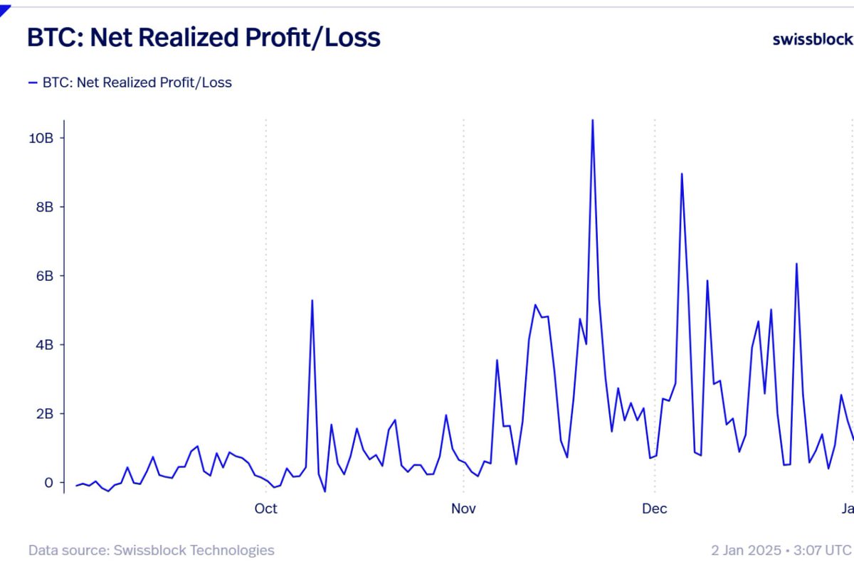 Glassnode and Swissblock co-founders Jan Happel and Yann Alleman, who share the social media handle Negentropic, say that the net realized profit/loss metric, which tracks whether Bitcoin holders are selling at a loss or a profit, indicates profit-selling has declined from the peaks in November and December.