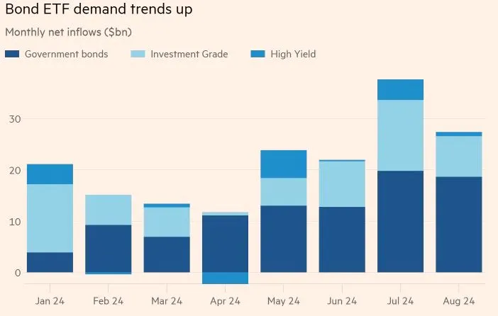 Many investors see fixed income ETFs as a defensive strategy, particularly when equity markets experience sharp downturns. Government bond ETFs, often seen as the lowest risk option, attracted $18.7 billion in August alone. In contrast, high-yield bond ETFs saw more modest inflows of $0.8 billion, reflecting investor caution toward riskier assets. Investment-grade corporate bond funds also performed well, with inflows reaching $7.9 billion. The continued strength of fixed income ETFs is a testament to their role in providing stability amid market volatility.