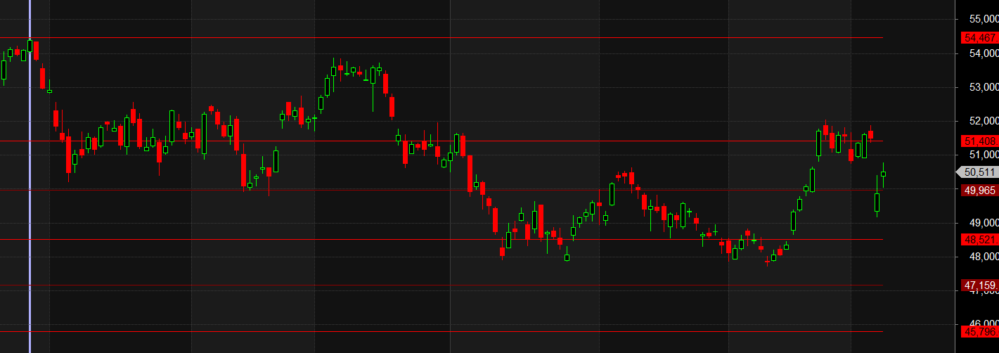 Upside Triggers: Sustained move above 50,250–50,500 can bring back buying interest.