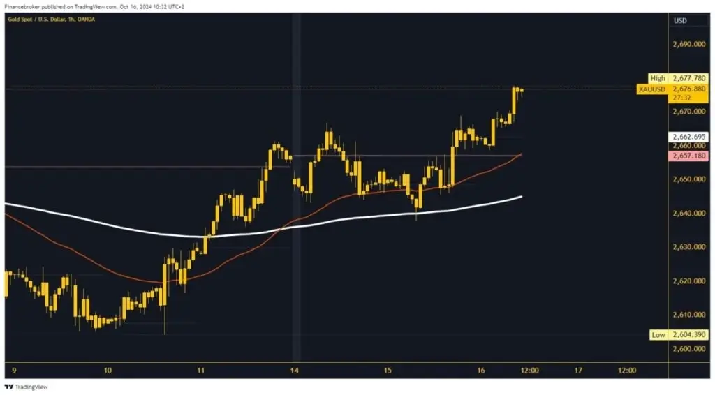 The price of gold rose to $2,669 last night, forming a new high. After that, we fell into a sharp sideways consolidation. During this morning’s Asian trading session, the price gained a new bullish momentum and broke above the $2670 level. We continued to $2677, and a weekly high was formed. Currently, gold is at $2676 and is close to climbing to a new weekly high. Potential higher targets are $2680 and $2685 levels.