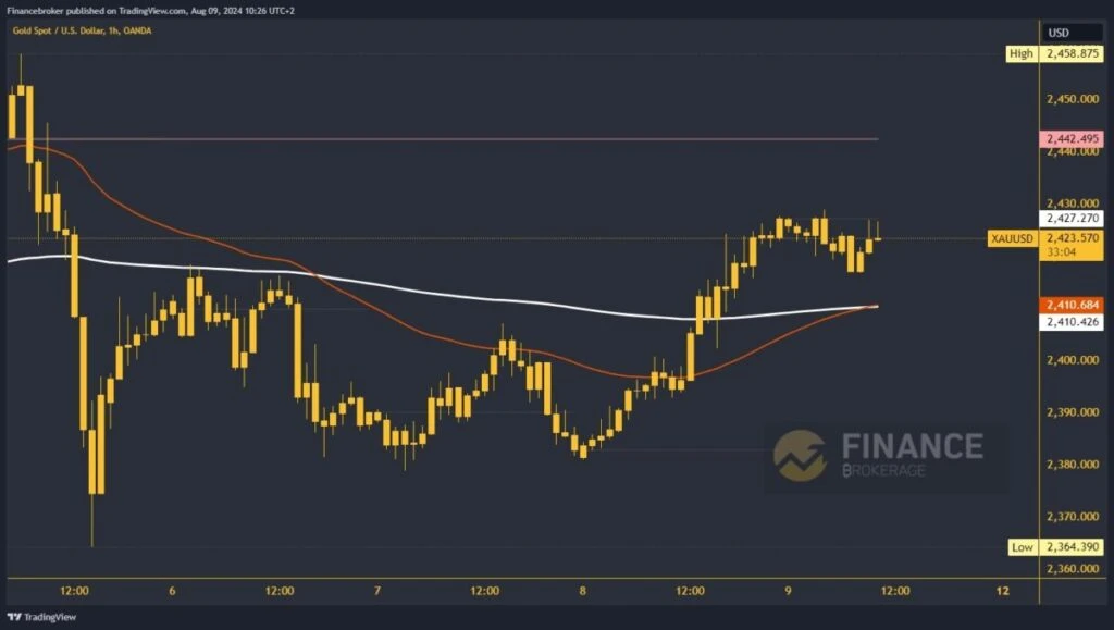 During this morning’s Asian trading session, the price of gold rose to $2429. Thursday was pretty good for the gold price, as we saw a rise from $2381 to $2427. During this morning’s Asian trading session, the price took a small step back to support at the $2420 level. We managed to hold there and get back above $2425. Now, we have a new opportunity to start a new bullish consolidation. We hope for a new daily high to confirm the bullish option.