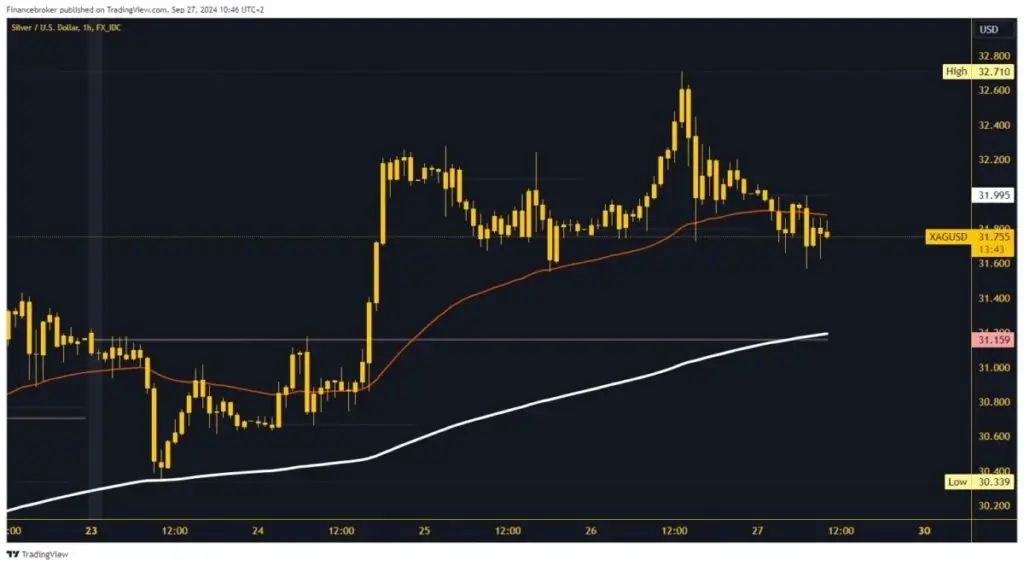 - Yesterday, the price of silver failed to maintain the zone of the weekly high of $32.70