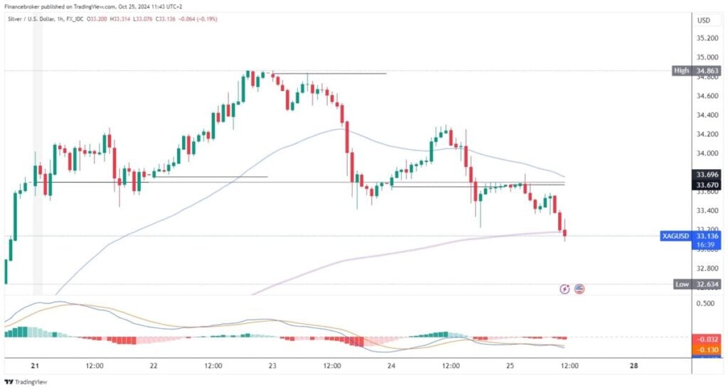 • The price of silver is in a bearish trend for the third day, with the formation of a weekly low at the $33.10 level