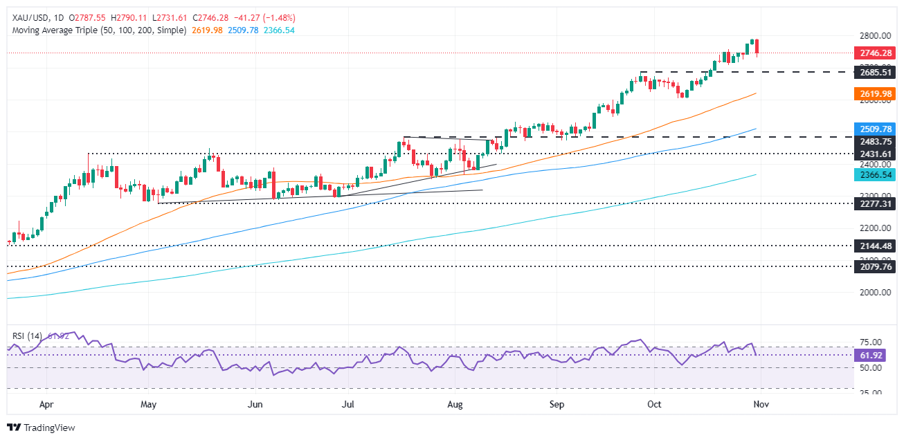 XAU/USD Technical Outlook: Gold price retreats below $2,750 as bulls take a breather
