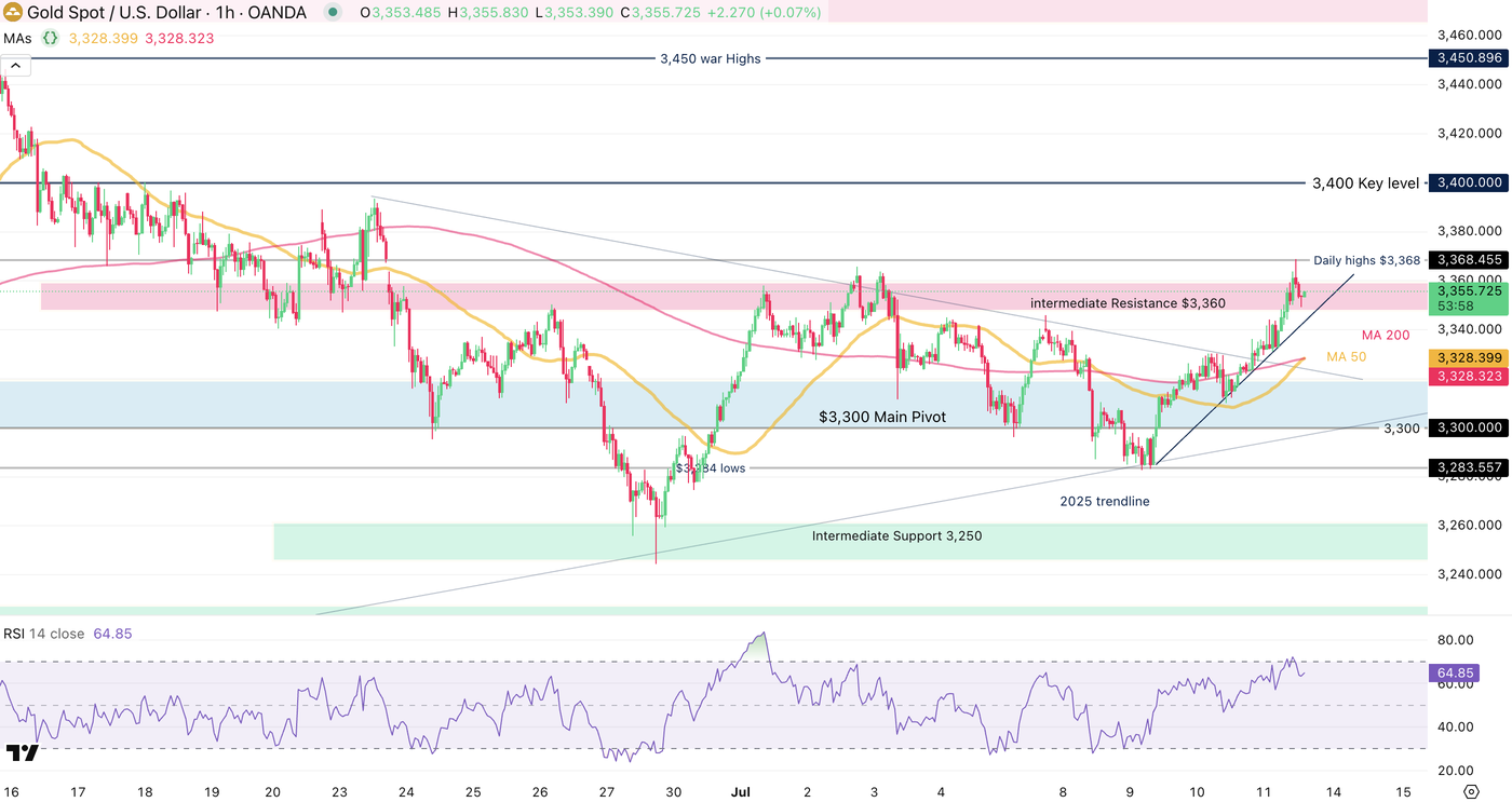 Gold 1H Chart, July 11 2025 – Source: TradingView