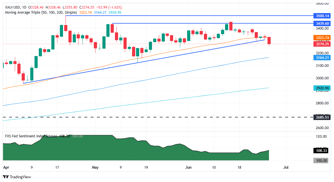 For a bullish continuation, XAU/USD must climb past $3,300. The following key resistance would be the 50-day SMA at $3,323, followed by the June 26 peak of $3,350. If surpassed, up next is $3,400. On the flip side, if XAU/USD tumbles below $3,300, the May 29 low of $3,245 and $3,200 are up for grabs.