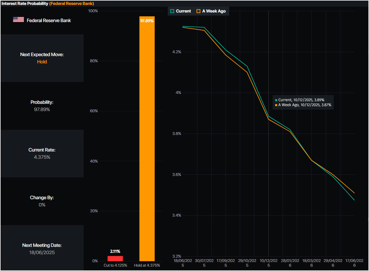 - Money markets suggest that traders are pricing in 49.5 basis points of easing toward the end of the year, according to Prime Market Terminal data.