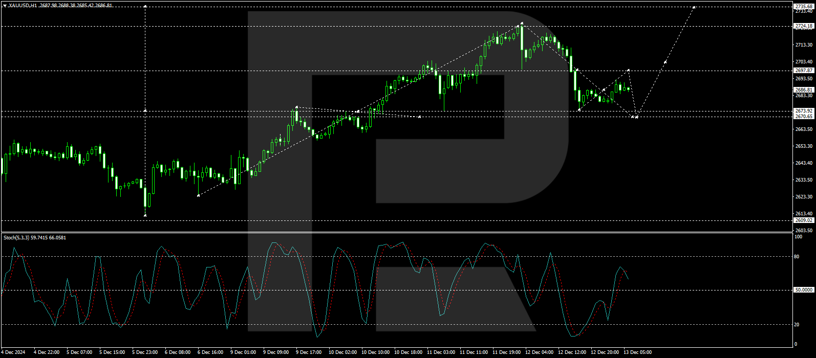 On the H1 chart, Gold is undergoing a correction towards 2,670.66. A rise to 2,697.77 could occur shortly, followed by a potential decline to the same level. Once this target is achieved, the possibility of initiating a new growth wave to 2,735.70 is expected, with a possible further extension to 2743.85. This analysis is corroborated by the Stochastic oscillator, whose signal line is currently above 50 and moving towards 80, suggesting continued upward potential.