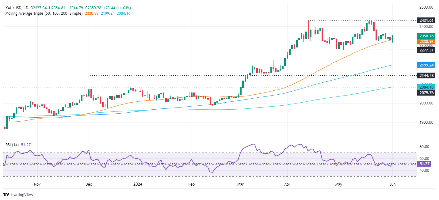 Conversely, if XAU/USD falls below the 50-day Simple Moving Average (SMA) at $2,331, that could pave the way to challenge the May 8 low of $2,303, followed by the May 3 cycle low of $2,277.