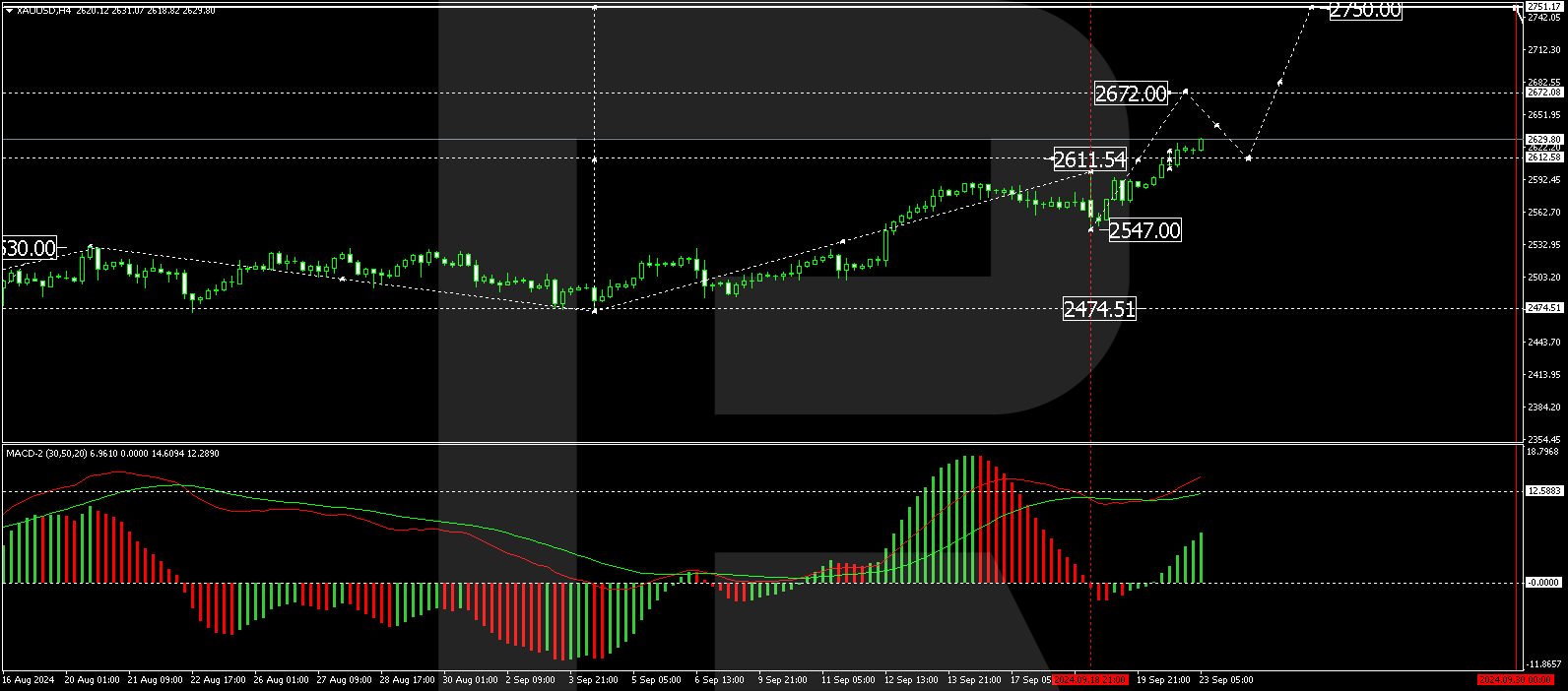 Gold has broken through the resistance at 2611.00 USD and is now targeting 2672.00 USD. Upon reaching this level, a corrective movement back to 2611.00 USD may occur, followed by another growth phase targeting 2750.00 USD. The MACD indicator supports this bullish outlook, with the signal line well above zero and ascending sharply.