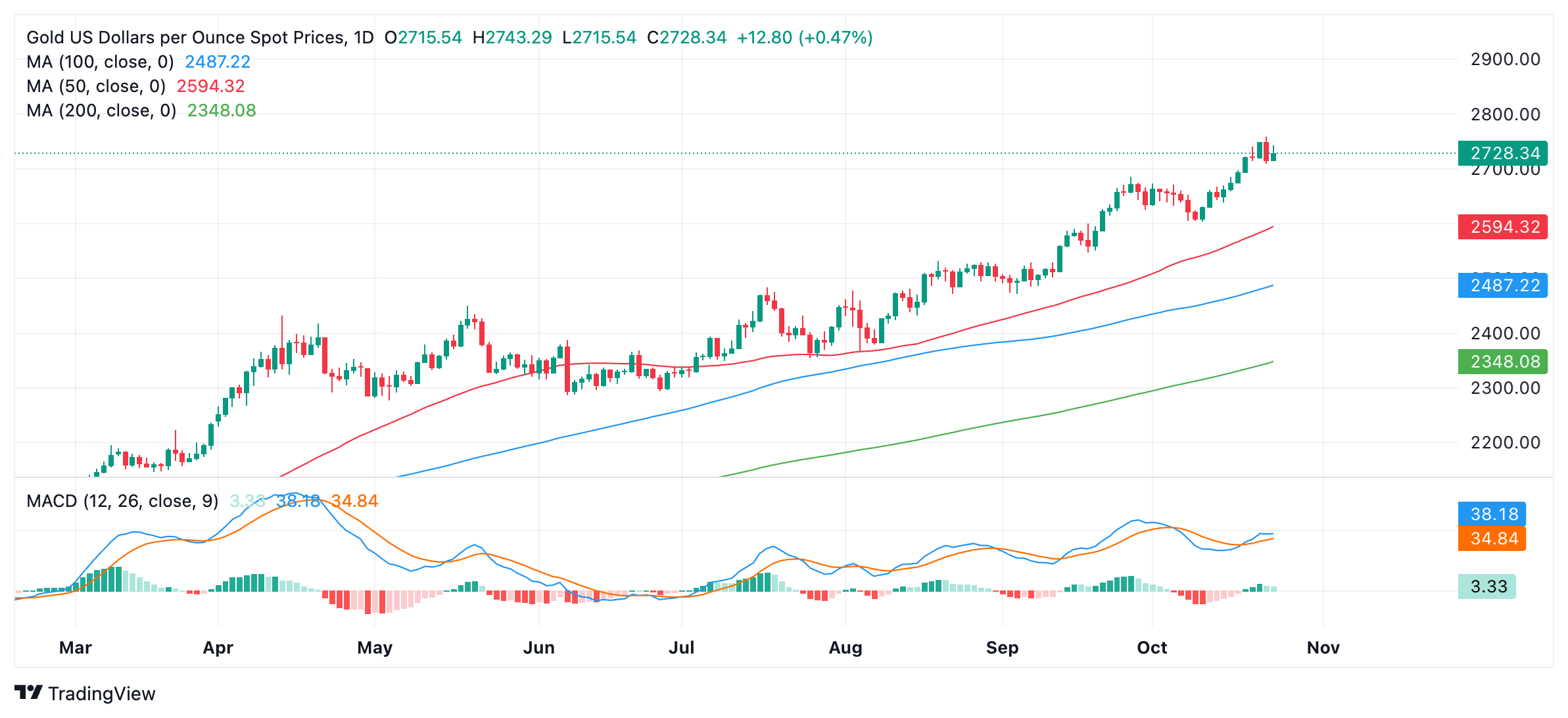 Gold (XAU/USD) recovers to trade back in the $2,720s on Thursday, after a 1.2% sell-off on the previous day, most probably driven by profit-taking. The precious metal is once again on the rise on the back of continued safe-haven flows as the conflict in the Middle East continues with no sign of resolution.