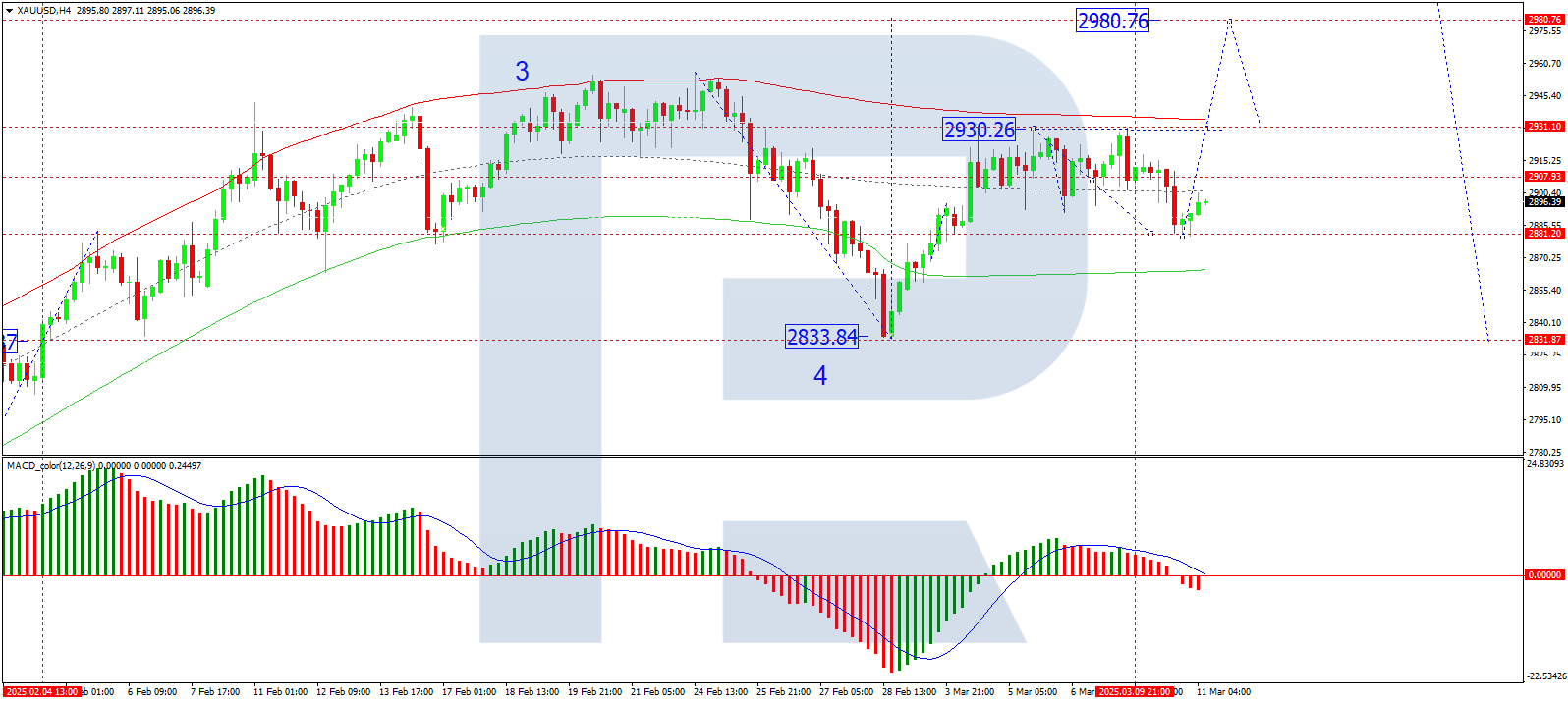 On the H4 chart, Gold recently formed a growth wave to 2,931 USD, followed by a correction to 2,880 USD. An upward move towards 2,906 USD is forming a consolidation range around this level. A breakout to the upside could trigger a further rise towards 2,980 USD, the local target. After reaching this level, a correction back to 2,900 USD is likely. If the price moves downward from the consolidation range, a correction to 2,860 USD is possible. This scenario is supported by the MACD indicator, with its signal line positioned above zero and pointing sharply upward.