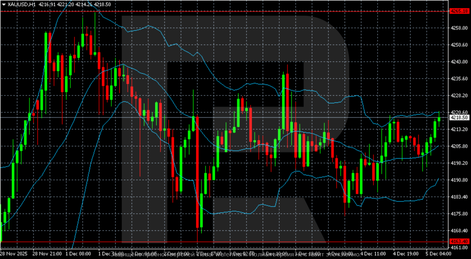 On the H1 chart, XAU/USD is trading within a tightening range between 4,188 USD and 4,220 USD, reflecting mixed short-term momentum. The middle Bollinger Band is providing near-term equilibrium, confirming the absence of a clear directional bias.