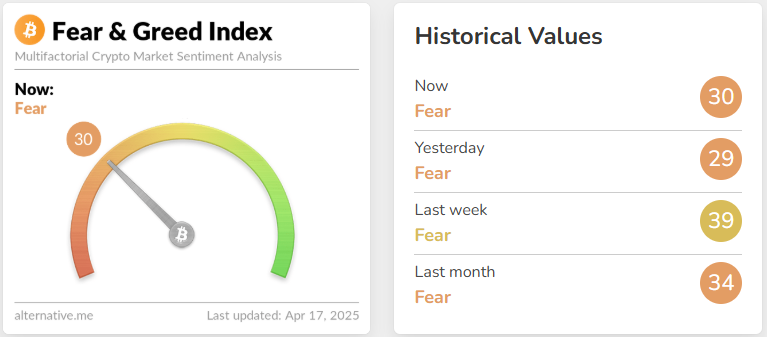 The total crypto market cap is US$2.65 trillion (AU$4.16 trillion), an increase of 0.66% in the past 24 hours, while the Fear and Greed Index remains firmly in Fear territory.