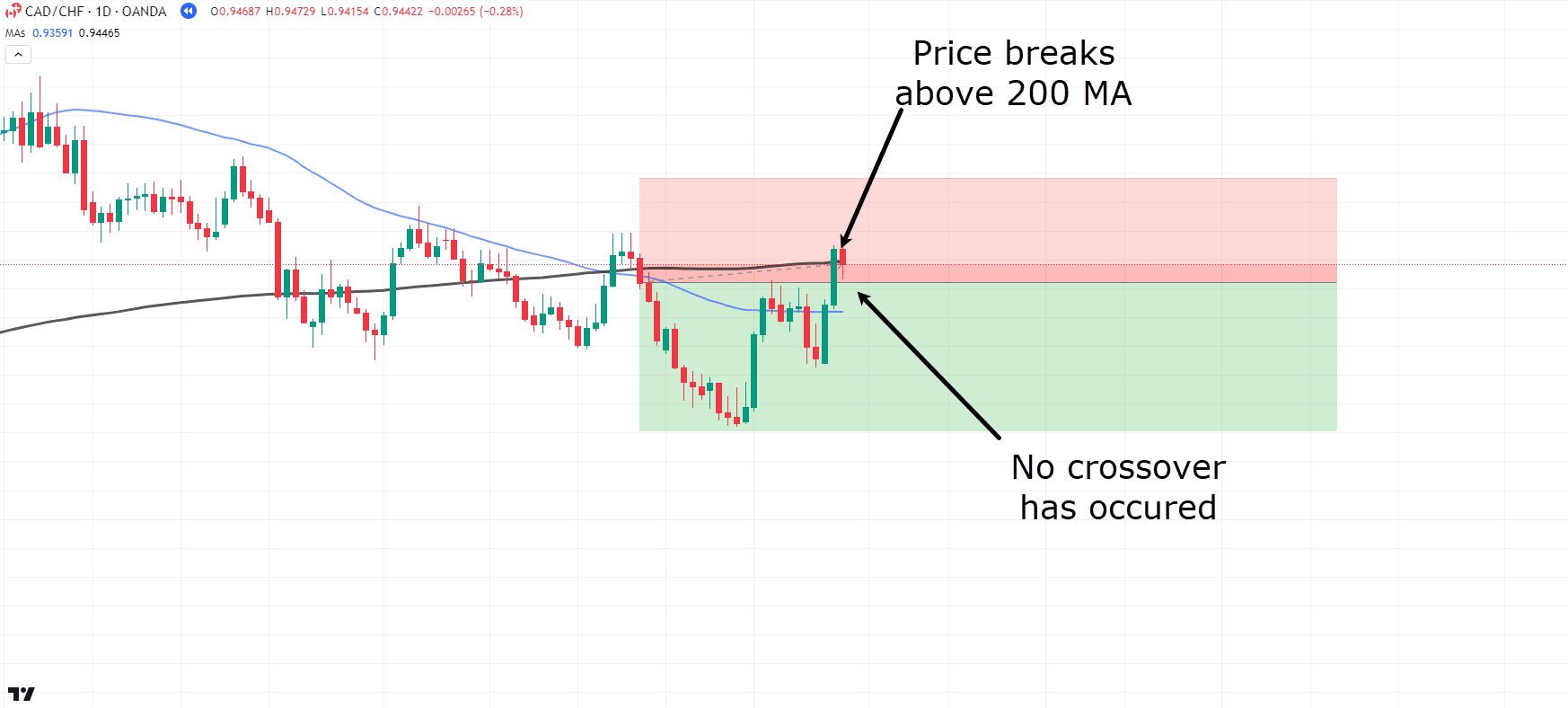 A false signal occurs when a Golden or Death Cross shows a trend change that… never shows up!