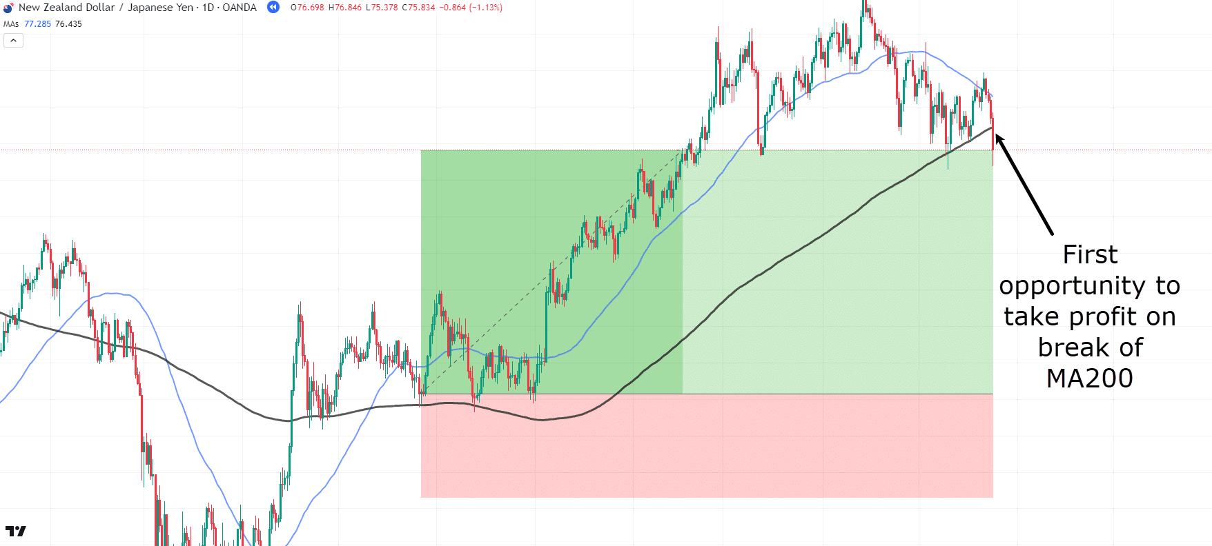 NZD/JPY Daily Chart Golden Cross Trade Management: