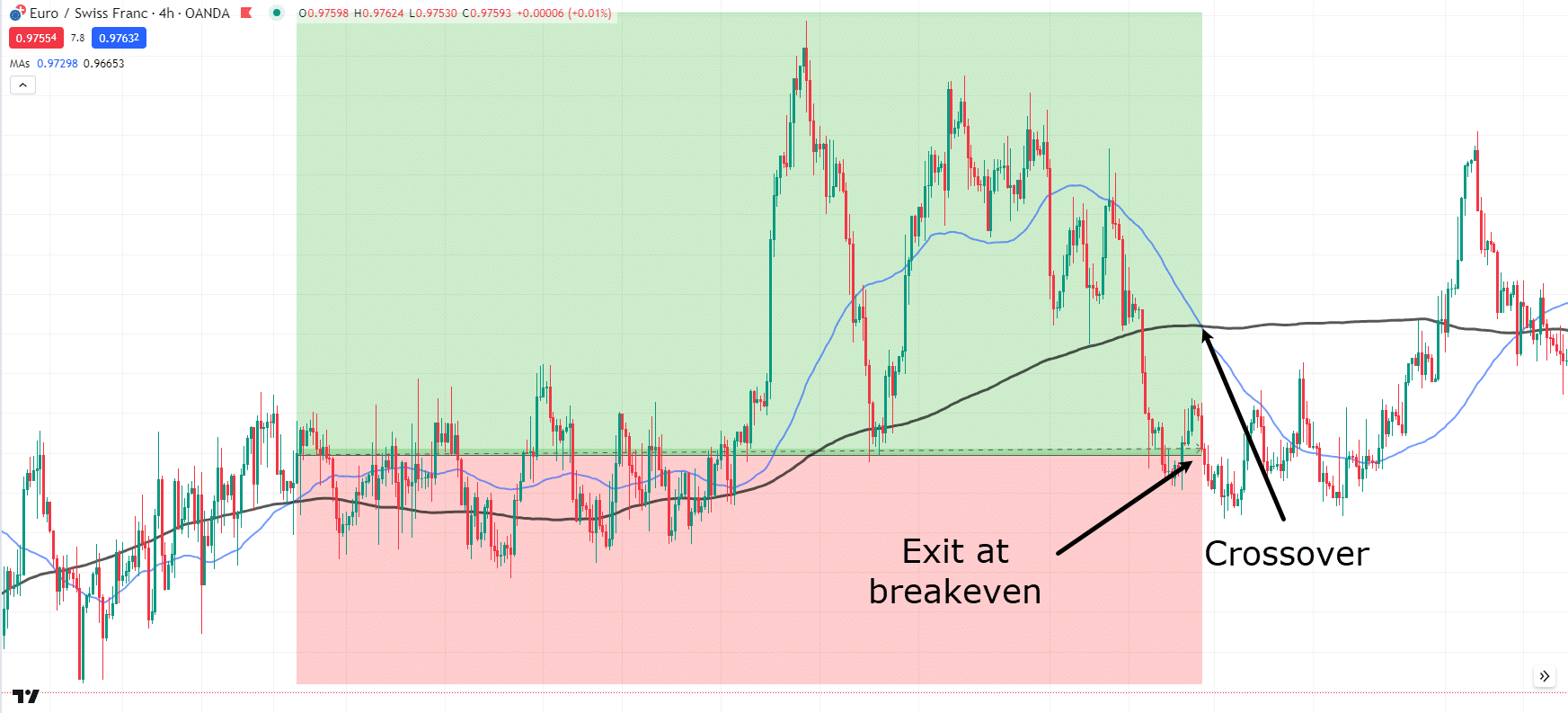 While price did move in your favor, by the time the crossover returned, it had reached a breakeven level.