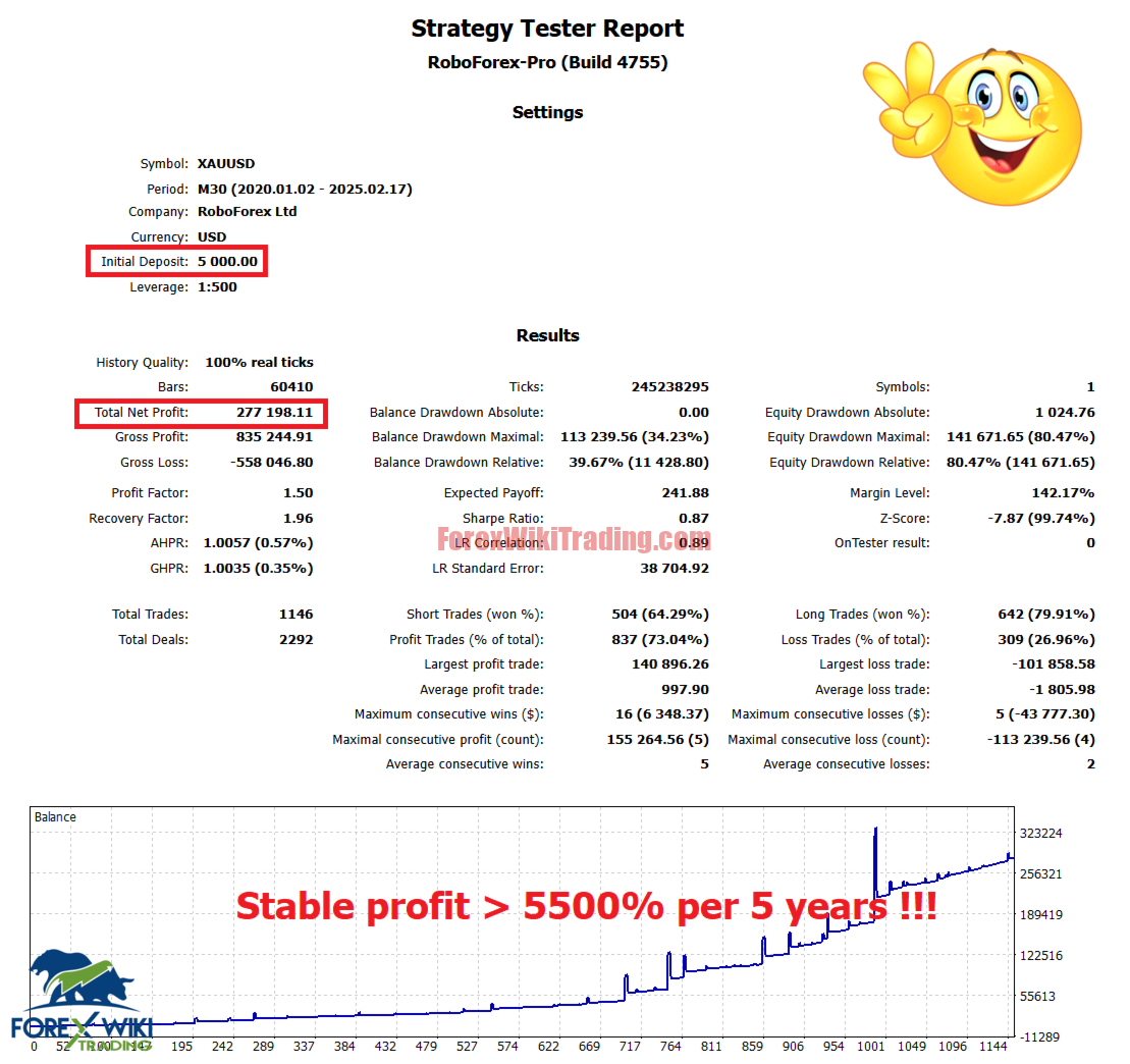 The recommended minimum deposit of $5,000 can be a barrier for many retail traders. Although the EA can technically work with lower amounts, its risk management and profitability may suffer.