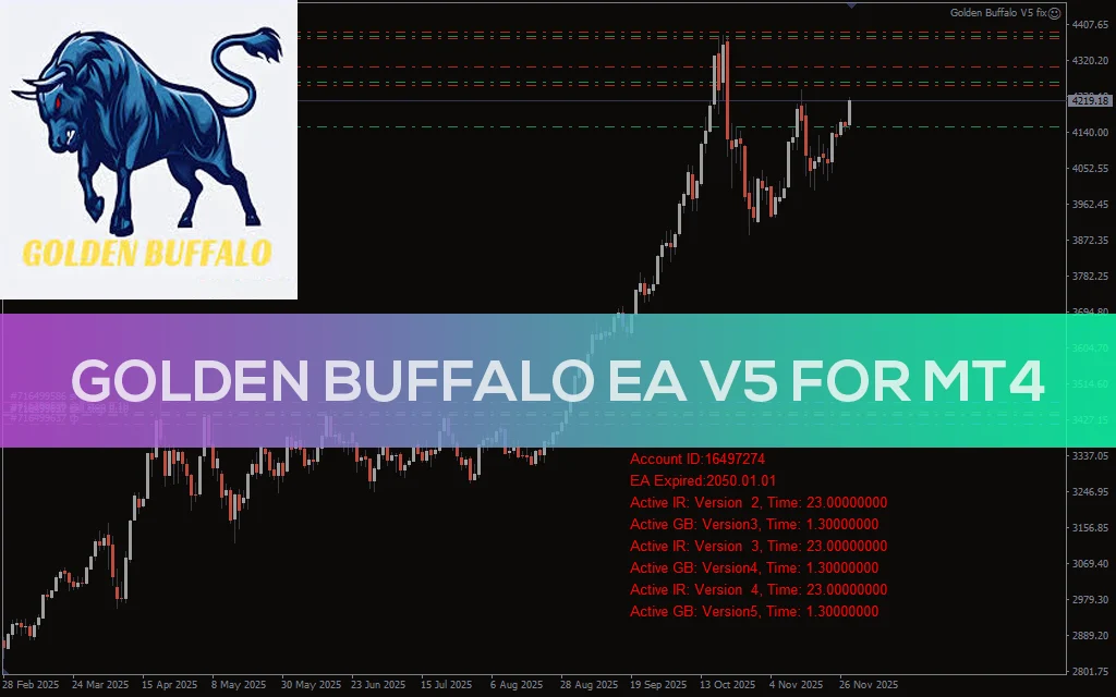 The gold trading landscape has evolved dramatically, and so has GoldPro Buffalo EA. Version 5.0 represents a paradigm shift in automated XAUUSD trading, introducing a revolutionary multi-version engine that runs five distinct algorithmic strategies simultaneously. Unlike traditional single-strategy robots that rely on one approach, GoldPro Buffalo EA V5.0 MT4 combines the IR (Intelligent Recognition) and GB (Golden Buffalo) versions 1 through 5, each operating at specific time intervals with unique entry logic. This fifth-generation update brings improved signal recognition, dynamic timing filters, and adaptive risk management that adjusts position sizing based on real-time market conditions and account balance fluctuations.