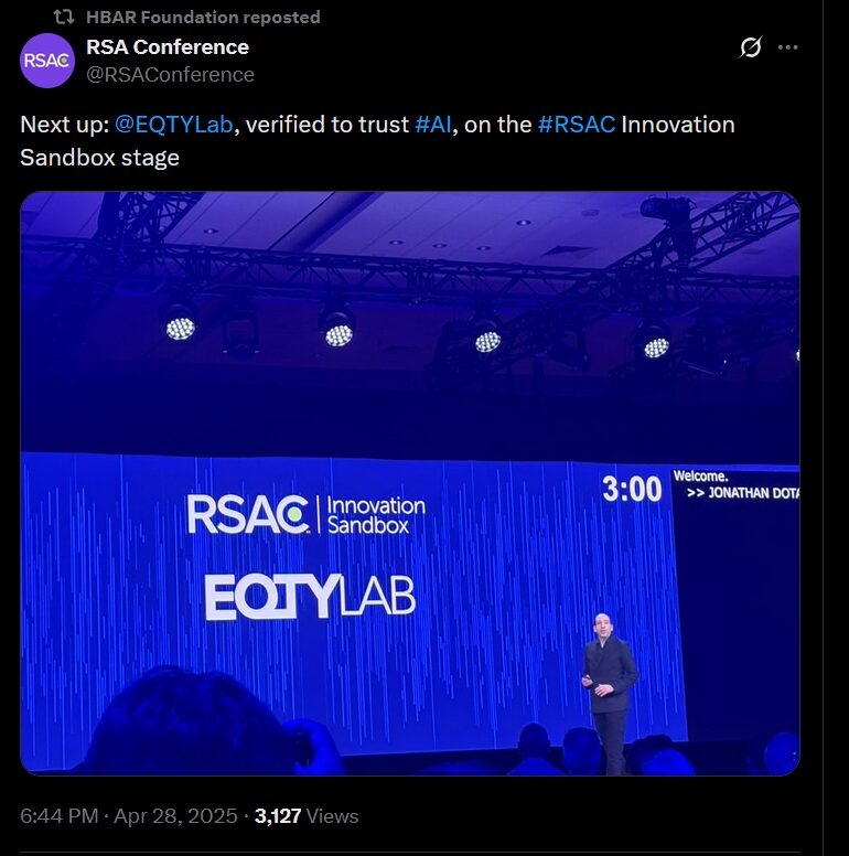 At the same time, EQTY Lab took the stage at the RSA Conference to speak on AI innovations and their current project with Hedera, Intel, and Nvidia, known as Verifiable Compute.