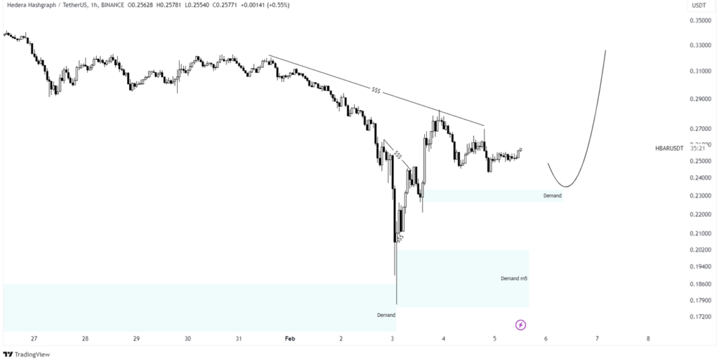 In our last Hedera (HBAR) analysis, we noted liquidity both above and below the price. Ideally, we were looking for a buying opportunity at the lower demand zone.