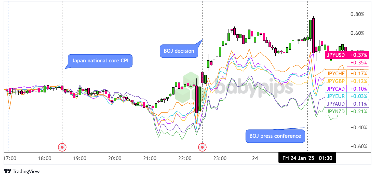 Overlay of JPY vs. Major Currencies Chart by TradingView