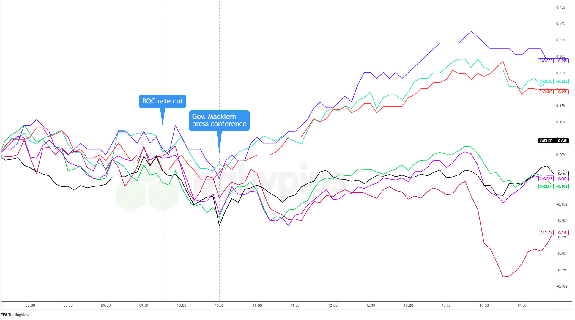 The Canadian dollar started edging lower near the U.S. session open and saw a fresh and broad-based bearish swing at the BOC’s jumbo rate cut.