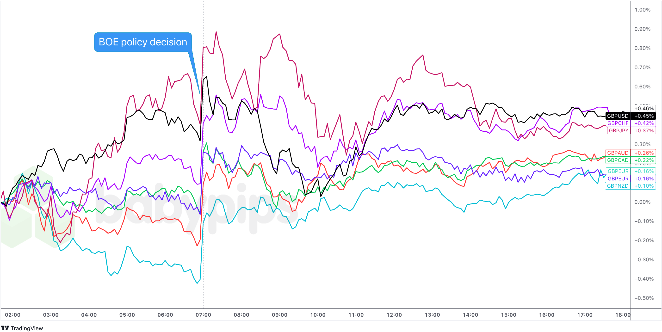 Overlay of GBP vs. Major Currencies Chart by TradingView