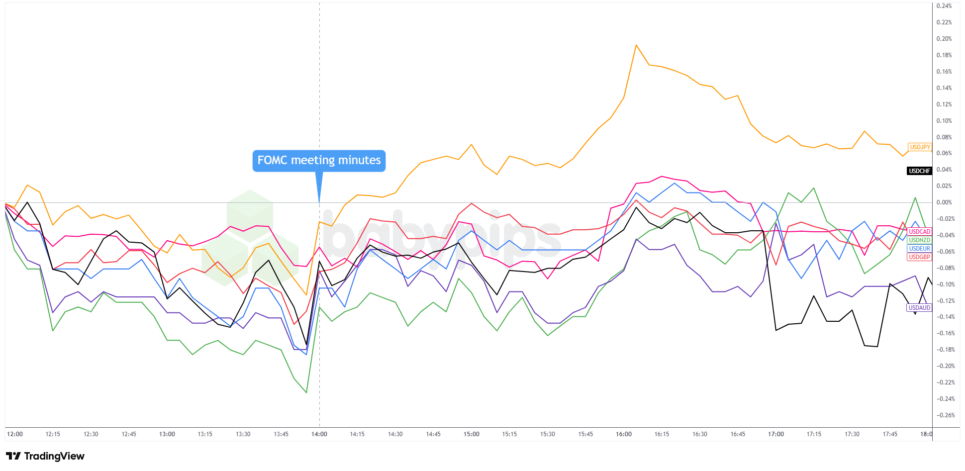 The dollar slipped into the London close but firmed after the Fed minutes signaled a stronger focus on inflation. Gains were steady across most major pairs, with USD/JPY leading modestly higher. The moves lacked the sharp swings that often follow Fed surprises, suggesting markets had already braced for a hawkish tone.