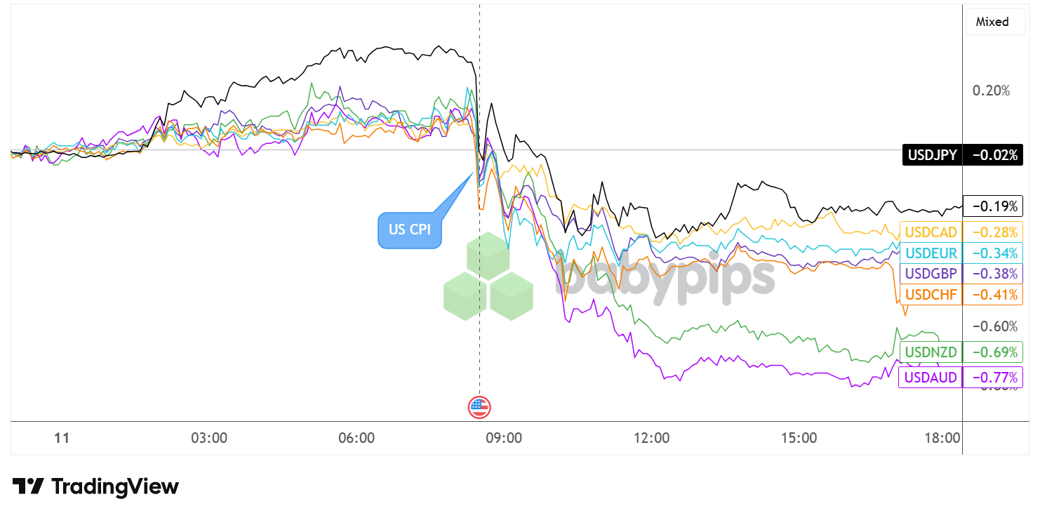The Greenback, which was cruising slightly higher leading up to the U.S. CPI release, dipped upon seeing the numbers simply come mostly in line with expectations. It appears the results barely dented dovish Fed expectations, with the CME FedWatch tool suggesting a 92.5% chance of a rate cut later this month versus the pre-CPI likelihood of 91.1%.