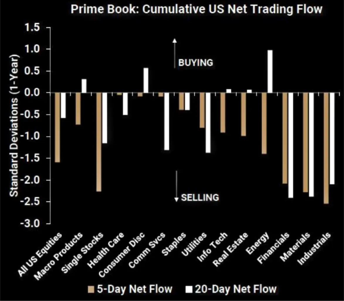The recent behavior of hedge funds indicates a shift towards a more cautious and defensive posture in US equities. The rapid pace of net selling across all sectors, particularly in cyclical sectors like Industrials, suggests a growing concern about economic stability and future market performance. This trend underscores the importance of closely monitoring hedge fund activities as an indicator of broader market sentiment and potential future movements in the equity markets. As HFs continue to adjust their strategies, investors should remain vigilant and consider the implications of these significant shifts in market dynamics.