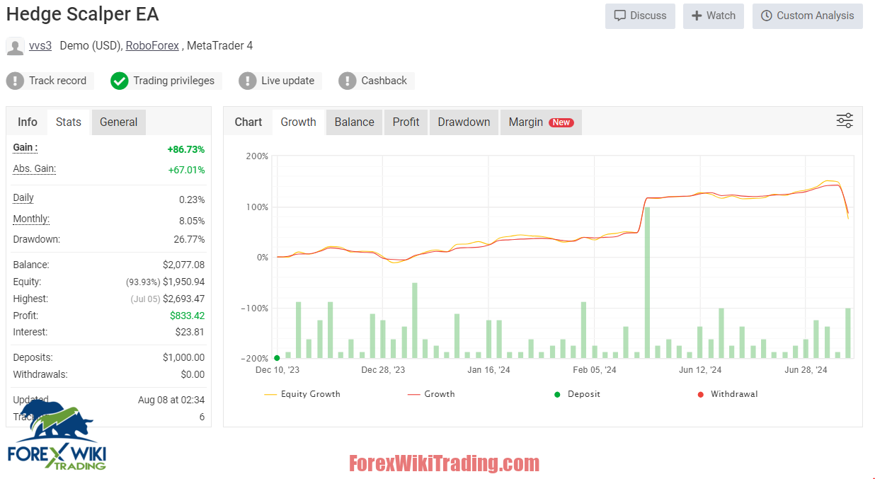 In the world of forex trading, technology has advanced to the point where automated systems, known as Expert Advisors (EAs), help traders to engage in the market with minimal manual intervention. The Hedge Scalper EA, designed for MetaTrader 4 (MT4), is one such tool. It combines scalping and hedging strategies, enabling forex traders to trade more efficiently. This review explores the tool in detail, covering its key features, potential advantages, and disadvantages, and offering an informed evaluation without recommending its use.