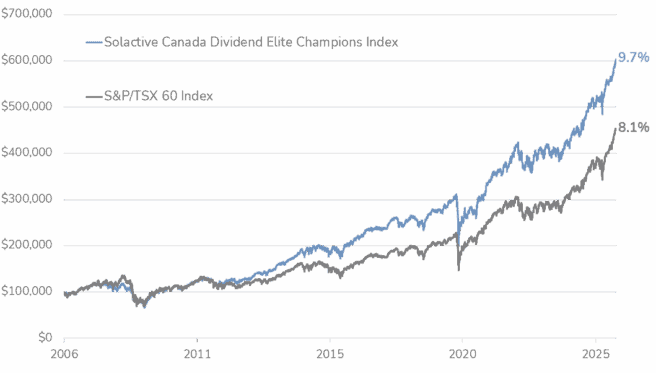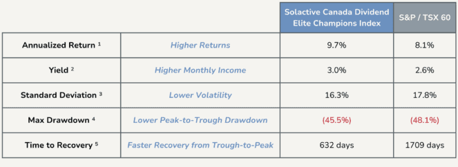It’s not just about comfort. Backtested data shows that baskets of dividend growth “champions” not only outpace the broader market but also do so with less volatility.