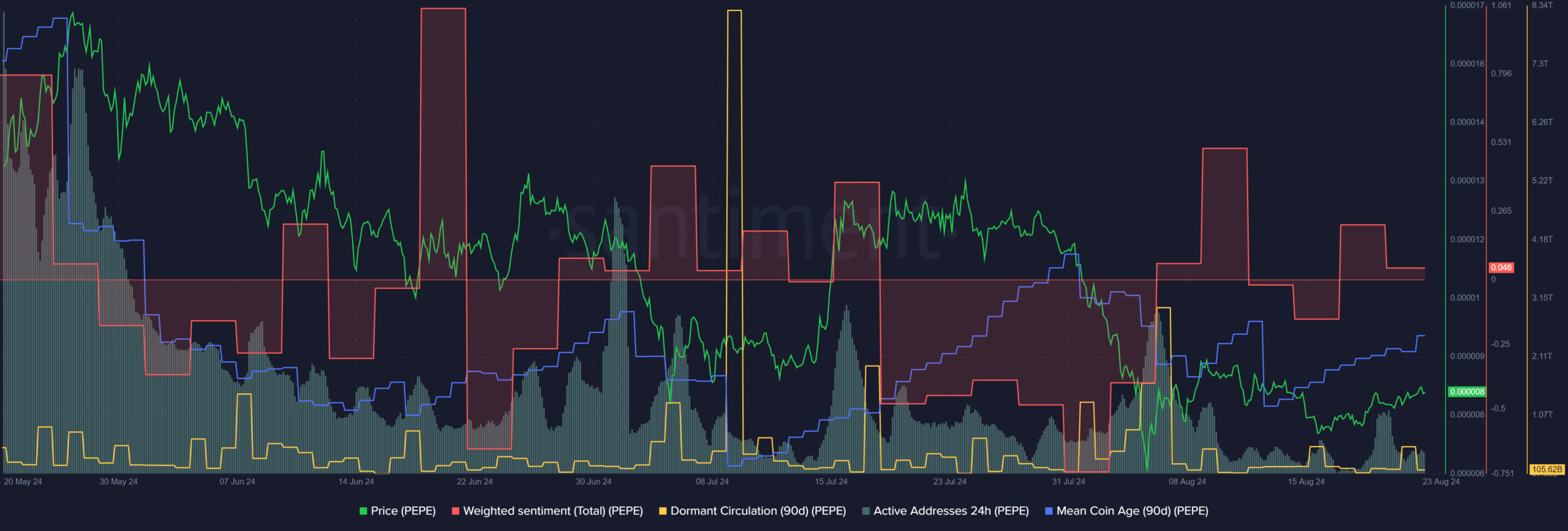 The rising mean coin age pointed to greater accumulation over the past week. If the dormant circulation remains quiet and the mean coin age can trend even higher, it might help PEPE’s recovery chances.