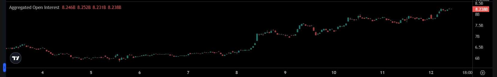 On the back of this move, the Aggregated Open Interest climbed past $8.2 billion, with traders piling into positions rather than cashing out.