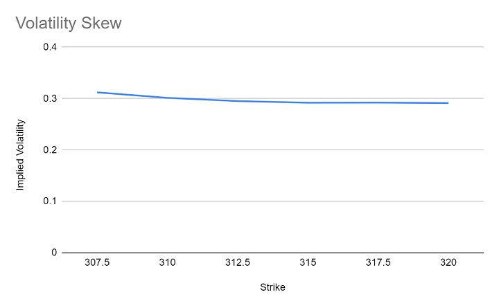 According to the Black-Scholes model, this line should have been flat. However, to ensure that option prices better reflect real-world conditions, the Heston model introduced a stochastic volatility model. ⁽¹⁾