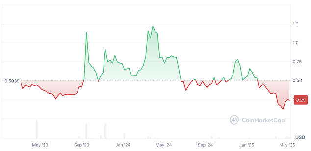 - 2024: Price rose as high as $0.776 in December of 2024 and later dropped to $0.5.