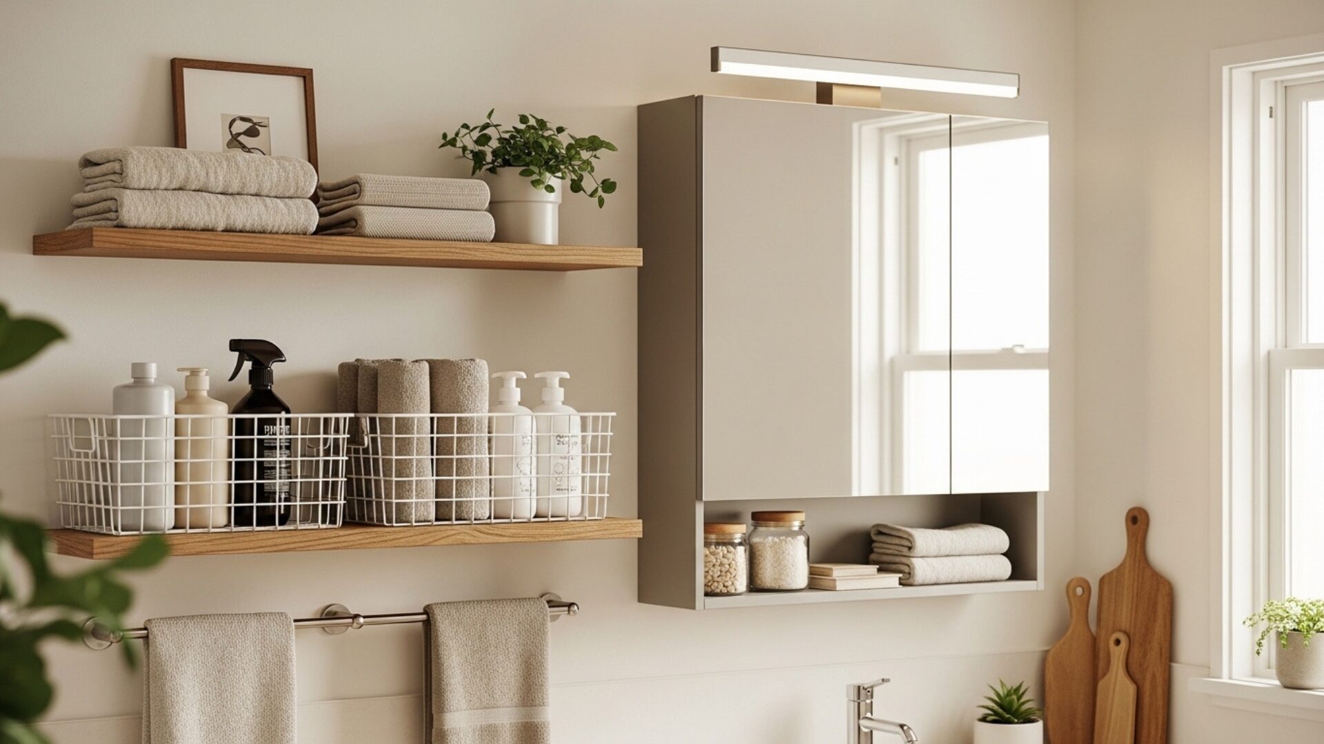 Try clever solutions like floating shelves, storage baskets, or a stylish medicine cabinet. These must-have items not only help reduce clutter but can also add charm to your bathroom or kitchen. Whether you need storage for bath towels, cleaning supplies, or seasonal items, the right storage will maximize your limited space.