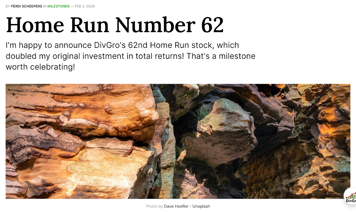 Today, I’m happy to announce DivGro’s 62nd Home Run!