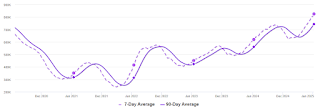 Usually, inventory is up about 18% from the seasonal low by this week in the year. So, 2025 is seeing a larger than normal pickup in inventory.