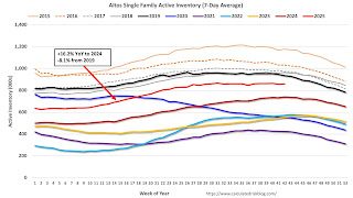 Altos reports that active single-family inventory was up 0.3% week-over-week. Inventory usually starts to decline in the fall and then declines sharply during the holiday season.