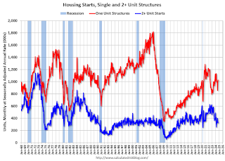 This shows the huge collapse following the housing bubble, and then the eventual recovery – and the recent collapse and recovery in single-family starts.