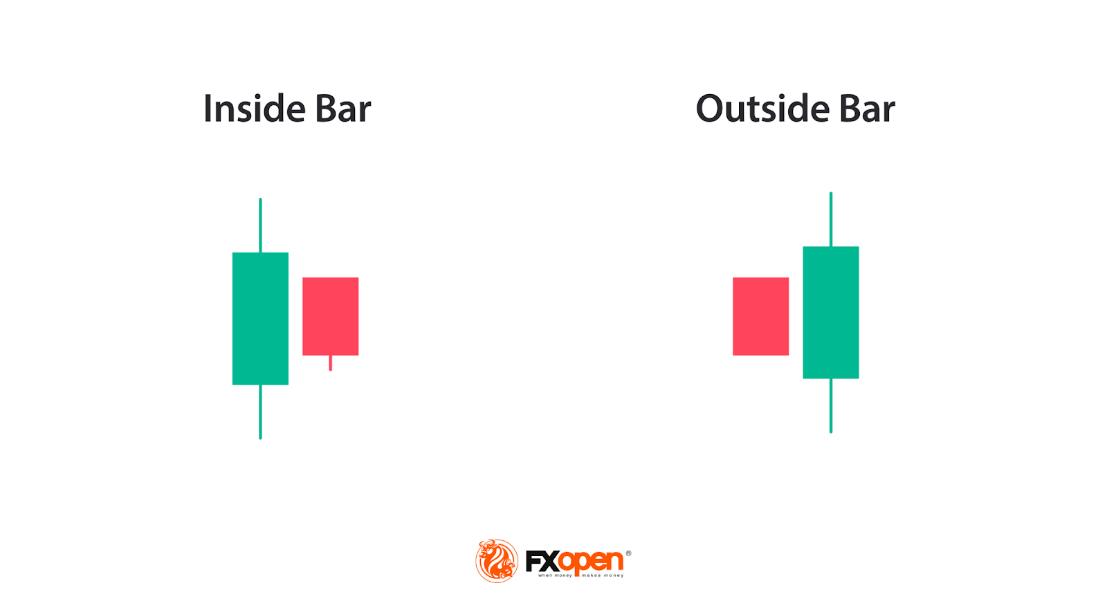 The outside bar is the most volatile of the three. It forms when the current candlestick’s high exceeds the previous candle’s high, and its low breaks below the previous low. Essentially, the price covers both sides of the prior range, capturing significant market activity.