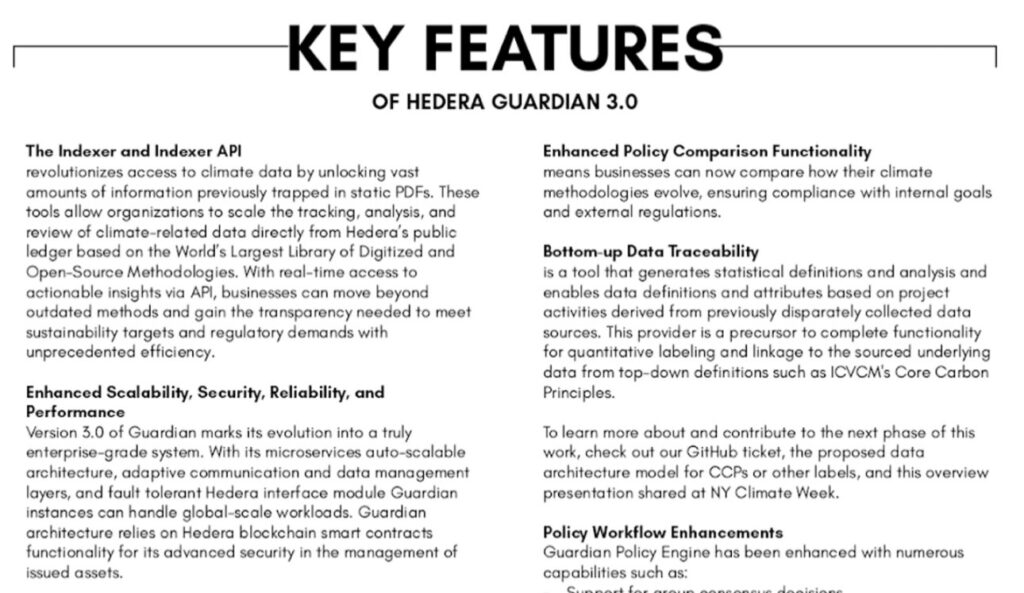 What makes Guardian so unique is its foundation on trust, transparency, and maneuverability. Climate certificates and credits issued through the Hedera Guardian come with verifiable audit trails, ensuring the underlying data can be trusted by enterprises and consumers.