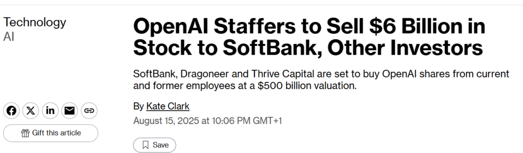 Buyers included Softbank, a leading Japanese bank, which is set to invest $40 billion into OpenAI before the end of 2025.