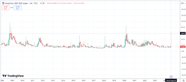 As we are in September 2024, here is the monthly chart of the VIX: